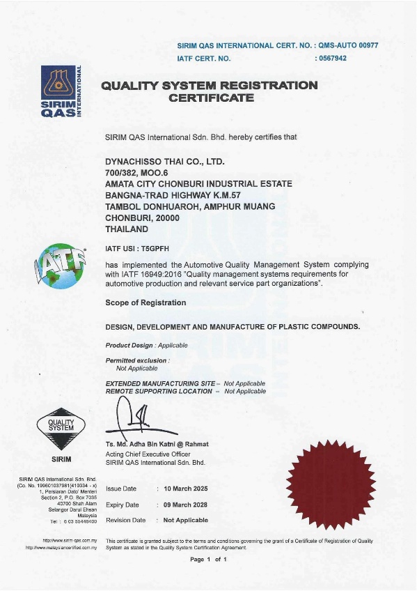 Leveraging multi-national companies’ technological and manufacturing know-how, DynaChisso was initially established between Dynachem & Co from Taiwan, Chisso Corporation from Japan, and Namrung Industry from Thailand in 2000, and has been located in the Amata Industrial Estate in ChonBuri province of Thailand. Hence, the name of DynaChisso derives from the joint force between Dynachem and Chisso Corporation.